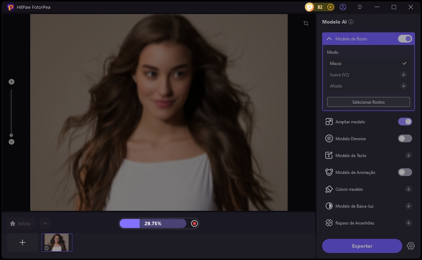 Agora, selecione o modelo de IA entre as opções disponíveis e aplique as configurações atuais para todas as fotos.